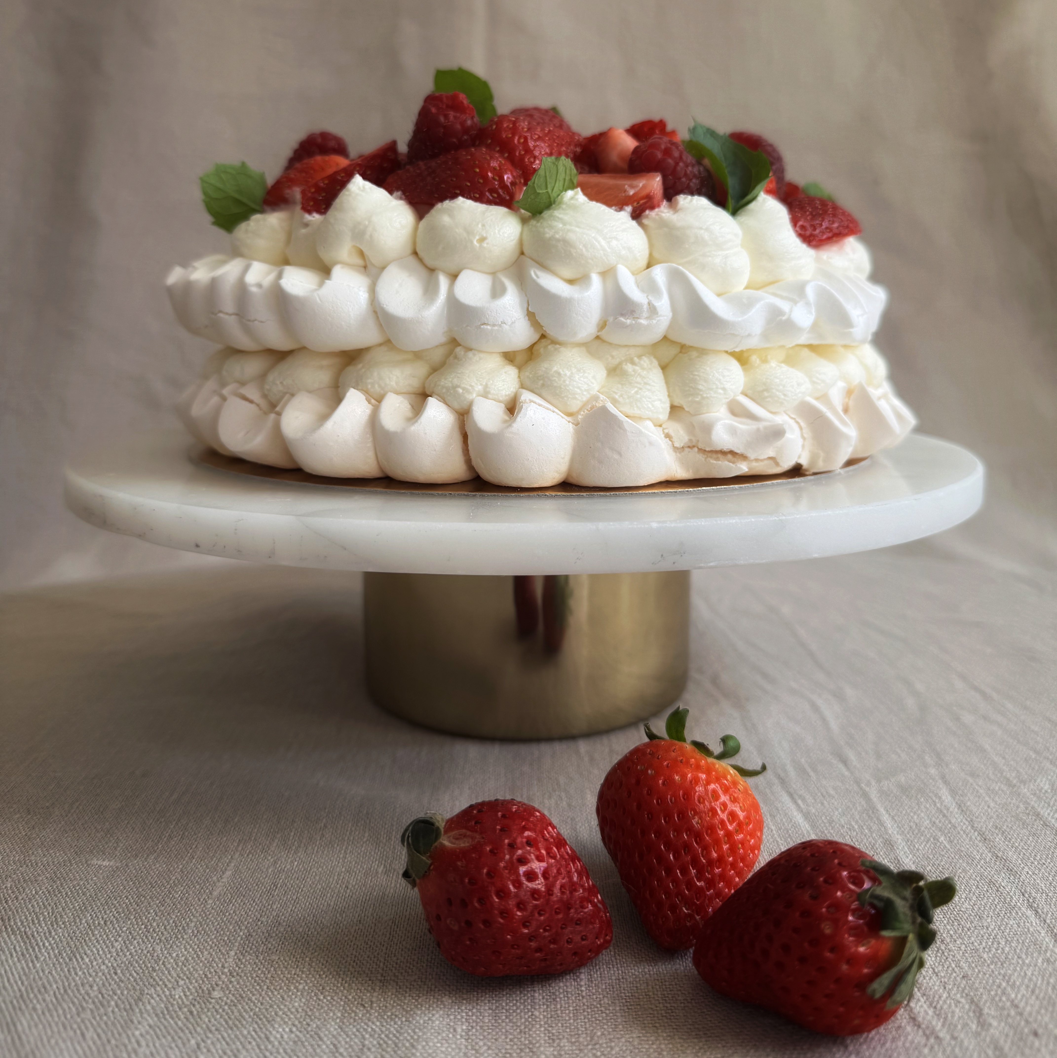 Delikatna, chrupiąca z wierzchu i miękka w środku. Pokryta puszystym kremem śmietanowym, idealnie zbalansowanym między słodyczą a lekkością. Całość dopełniają świeże sezonowe owoce, które nadają deserowi orzeźwiającego charakteru i kolorowego uroku. To elegancki i efektowny deser, który zachwyca zarówno smakiem, jak i wyglądem.