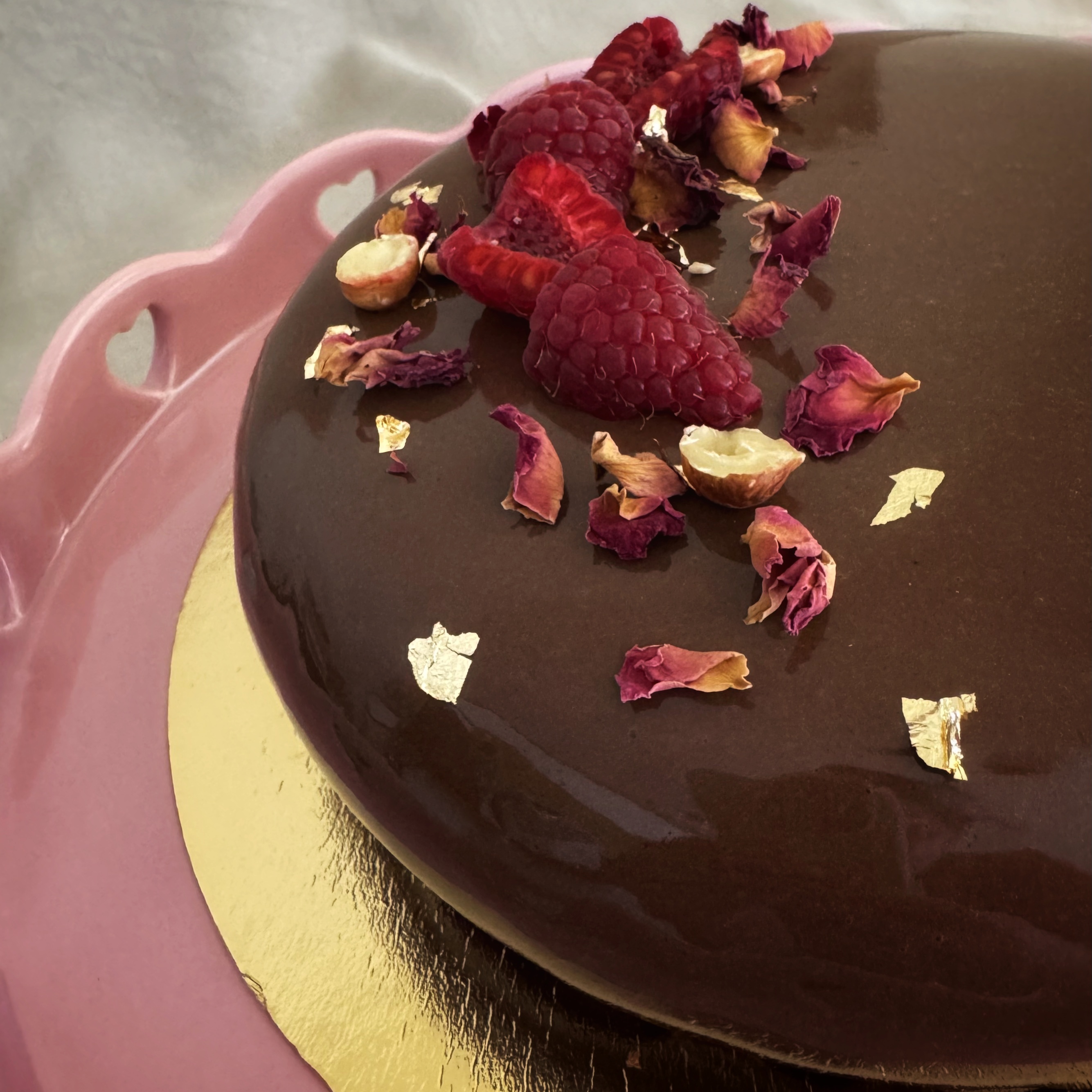 To wyrafinowane ciasto musowe łączy w sobie elegancję i zaskakującą głębię smaków. Na spodzie znajduje się sezamowe blondie – wilgotne, maślane ciasto z nutą prażonego sezamu, które nadaje całości wyjątkowego, lekko orzechowego charakteru. Wyżej rozpościera się delikatny mus z białej czekolady aromatyzowany trawą cytrynową i liśćmi limonki kaffir. W samym sercu – żelka malinowa, intensywna i owocowa, której lekka kwasowość idealnie równoważy słodycz musu i głębię sezamu.
