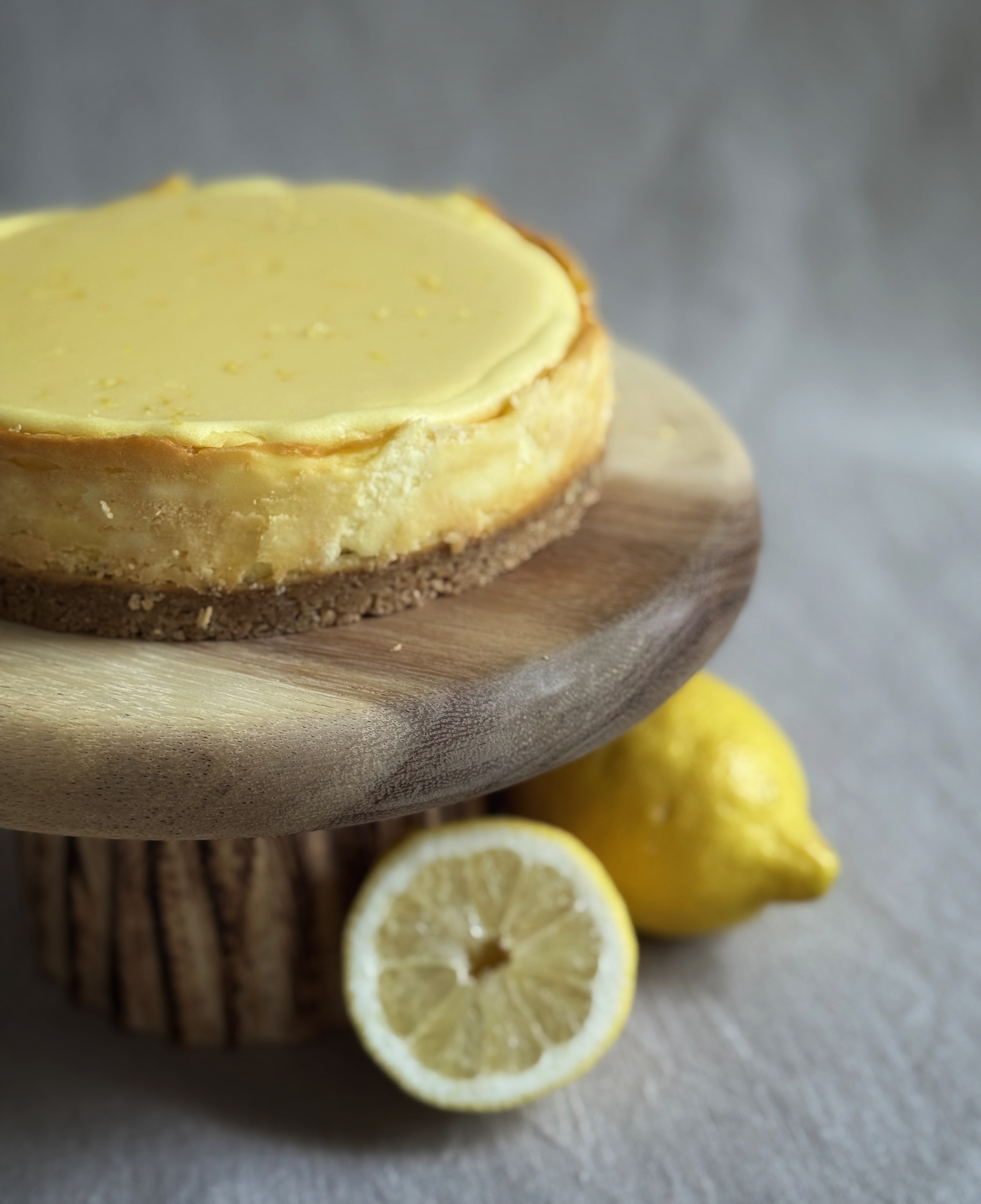 Ten sernik to kwintesencja świeżości i lekkości zamknięta w kremowej formie. Na ciasteczkowym, maślanym spodzie spoczywa aksamitna masa serowa. Jego sercem jest intensywnie cytrusowy lemon curd – gładki krem z prawdziwych cytryn, który dodaje deserowi wyrazistej, orzeźwiającej nuty. Jego słodko-kwaśny charakter przełamuje klasyczną słodycz sernika, tworząc idealnie zbalansowaną całość.